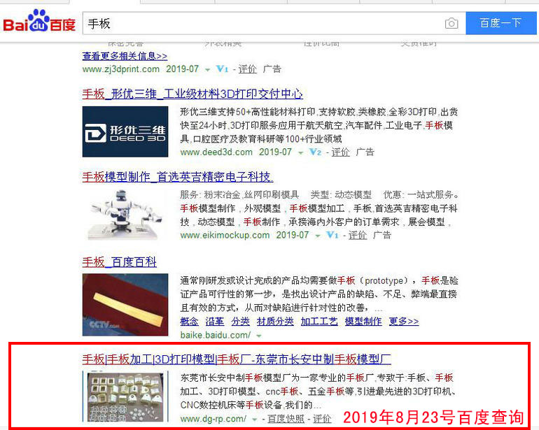 手板加工 : 2019-02-28上線 2019-03-05百度第20(原為第5頁(yè) 第7位) 2019-03-13百度第10名 2019-03-19百度第3名 2019-03-25百度第1名